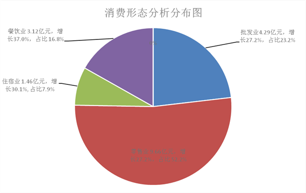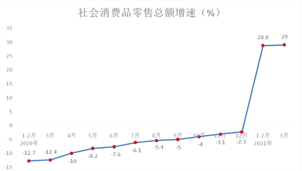 5.社會消費品零售總額。一季度,全縣社會消費品零售總額完成18.52億元,同比增長29.0%,高於年初目標18.5個百分點 。