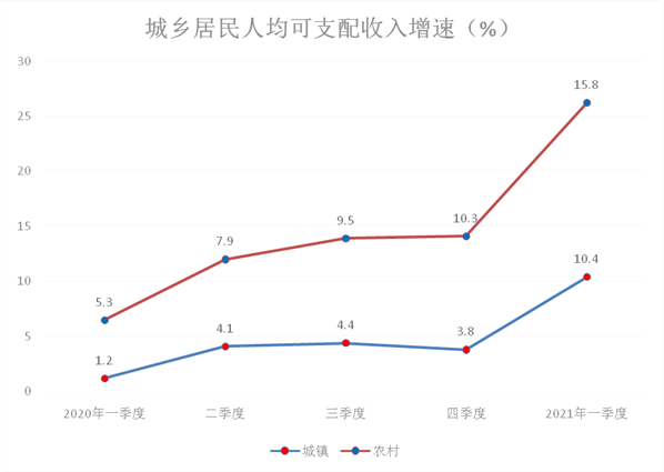 7.居民可支配收入。一季度,全縣實現城鎮居民人均可支配收入7364元,比上年同期增加694元,同比增長10.4% ;農村居民人均可支配收入4352元,比上年同期增加594元,同比增長15.8% 。城鄉居民收入差距進一步縮小,農村居民人均可支配收入增長快於城鎮居民人均可支配收入5.4個百分點。