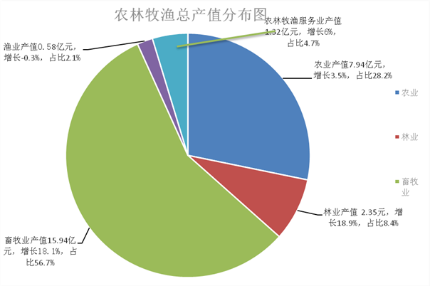 2.農業生產。上半年,全縣實現農林牧漁總產值28.15億元,同比增長13.5%。