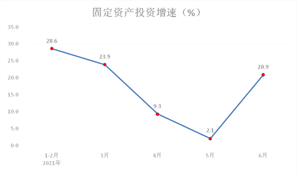 4.固定資產投資。上半年,全社會固定資產投資同比增長20.9%,高於年初目標10.4個百分點。