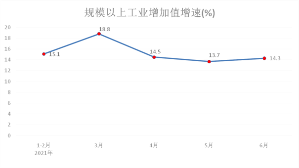 3.規模以上工業。上半年,全縣規模工業增加值同比增長14.3%,高於年初目標6.3個百分點。