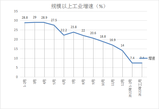 3.規模以上工業。一季度,全縣規模工業增加值同比增長7.4%,差年度增速目標1.6個百分點。