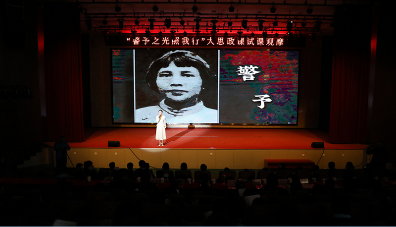 課堂以情景演繹形式切入,聚焦中國共產黨唯一女創始人向警予的革命事跡。主講老師陳雪薇以“光”為主題,設置“尋光·青春何以覺醒、聚光·信念鑄就豐碑、發光·熱血浸染山河、續光·我輩砥礪前行”四個篇章,通過沉浸式演繹、故事化表達、互動式提問的創新形式,將宏大理論與青春視角、地方實踐深度融合,打造出一堂有思想深度、情感溫度、藝術感染力的思政課。課堂尾聲,全體學生齊聲喊出“強國有我”的青春誓言,鏗鏘有力的聲音彰顯出新時代青少年傳承紅色血脈、勇擔時代重任的堅定決心。