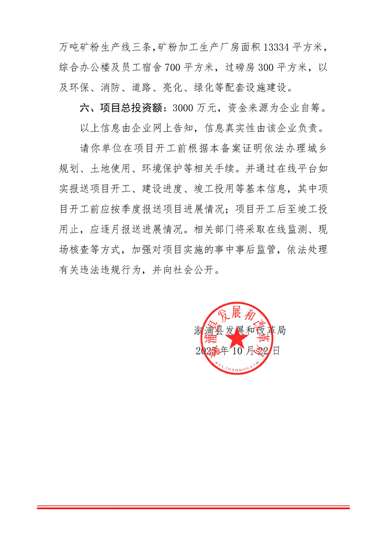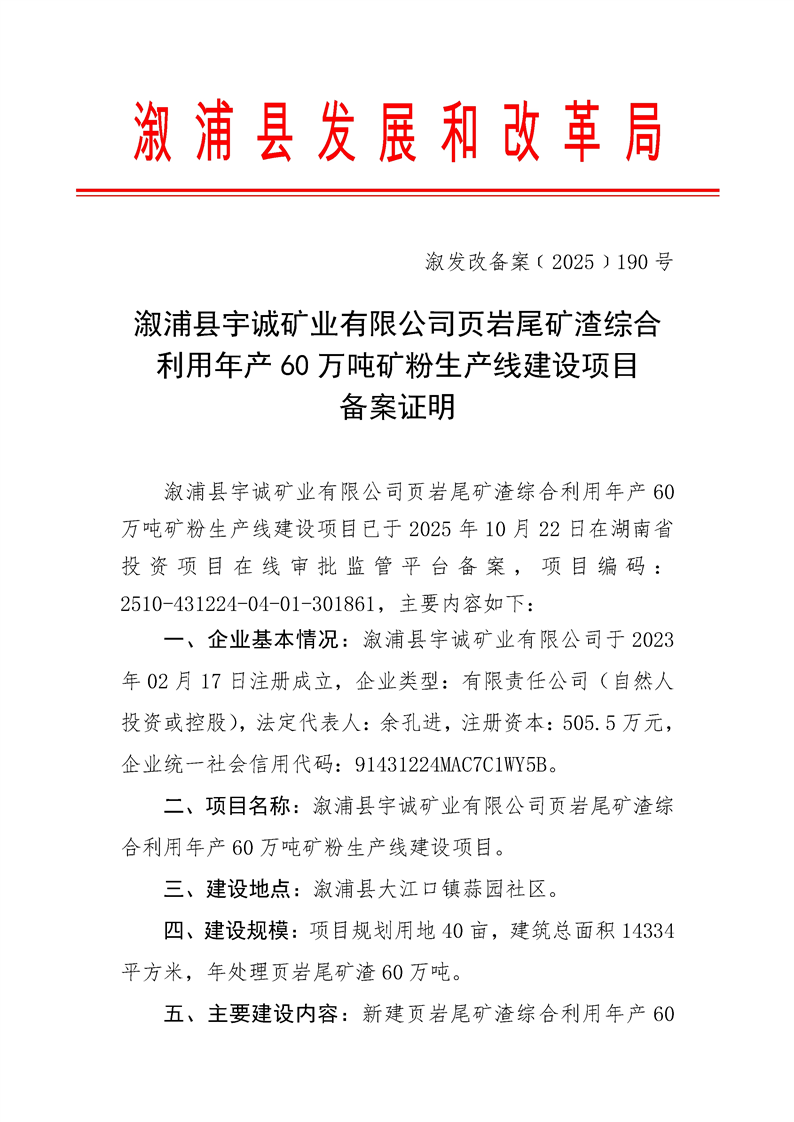 漵浦縣宇誠礦業有限公司頁岩尾礦渣綜合利用年產60萬噸礦粉生產線建設項目備案證明