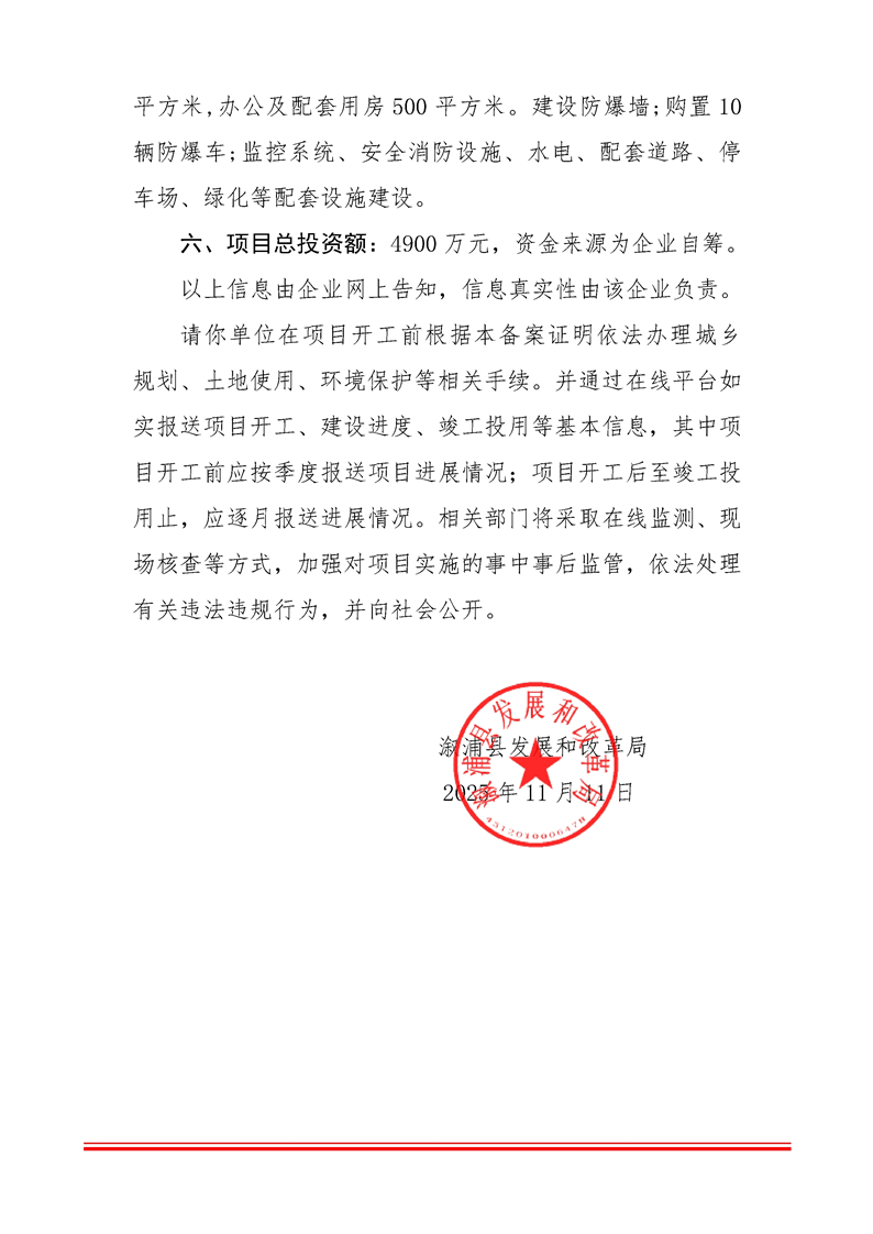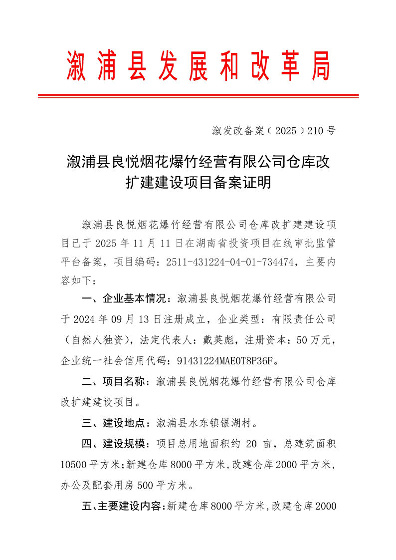 漵浦縣良悅煙花爆竹經營有限公司倉庫改擴建建設項目備案證明