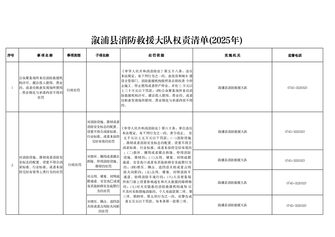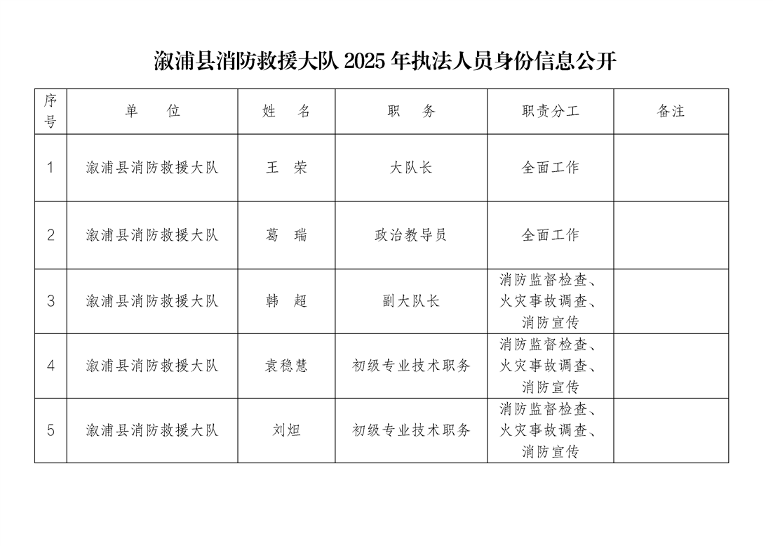 漵浦縣消防救援大隊2025年執法人員身份信息及權責清單