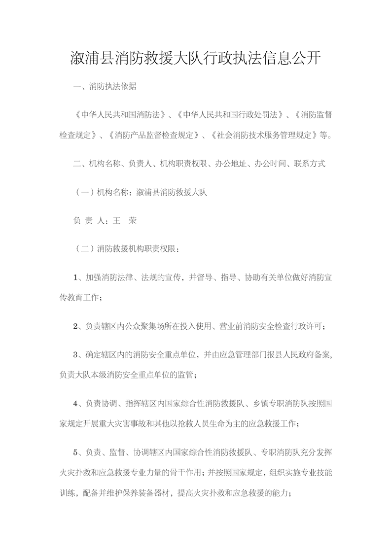 漵浦縣消防救援大隊行政執法信息公開