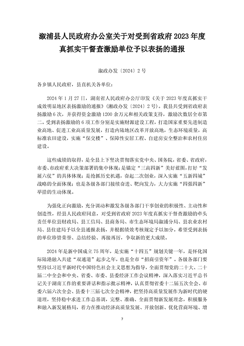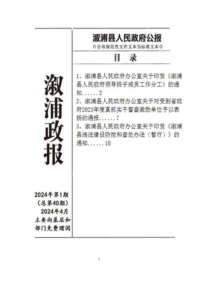 漵浦縣人民政府公報2024年第一期