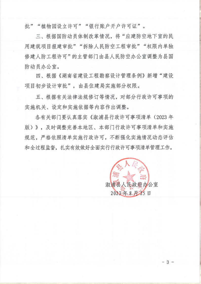 漵浦縣人民政府辦公室關於公布《漵浦縣行政許可事項清單(2023年版)》的通知